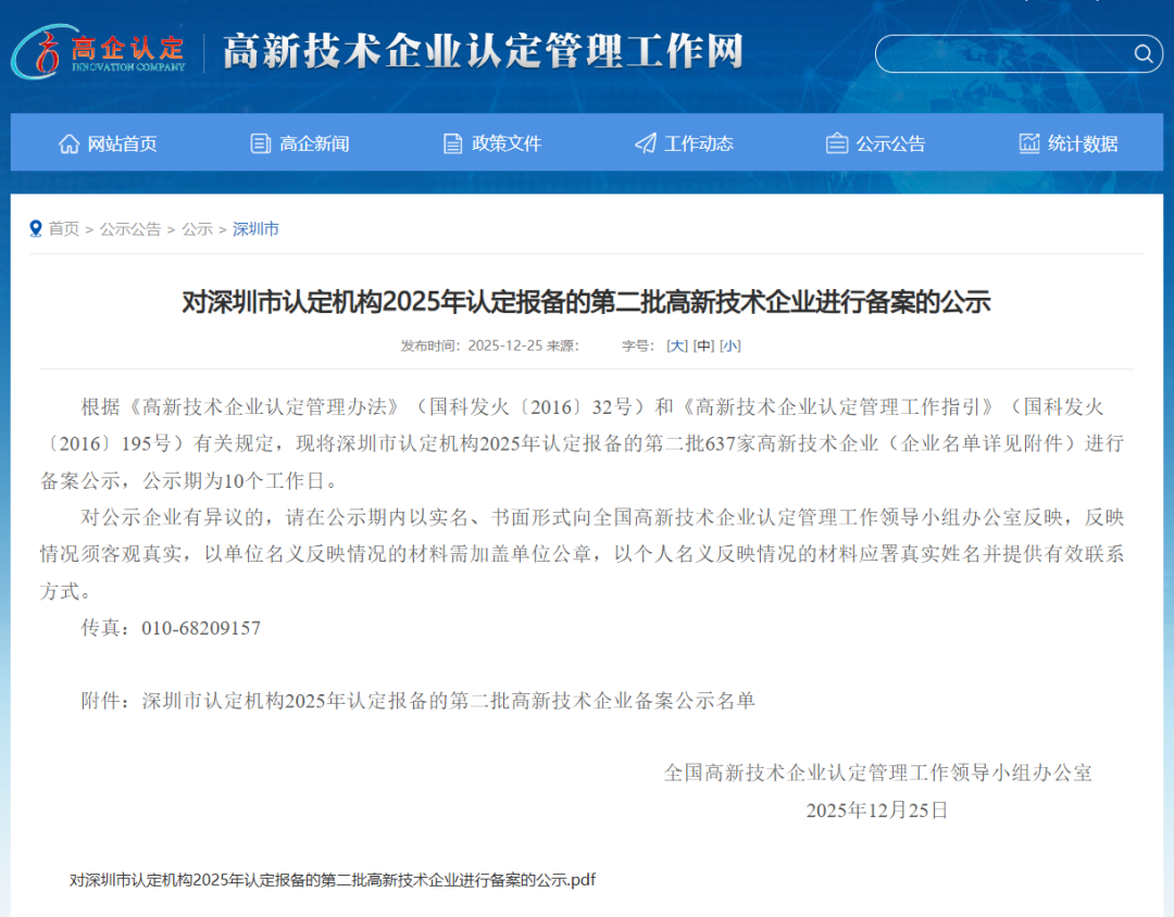 根据《高新技术企业认定管理办法》(国科发火〔2016〕32号)和《高新技术企业认定管理工作指引》(国科发火〔2016〕195号)有关规定,通敏国际能源科技(深圳)有限公司(下称“深圳通敏”)获评深圳市认定机构认定报备的2025年第二批高新技术企业称号。